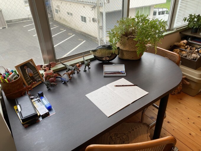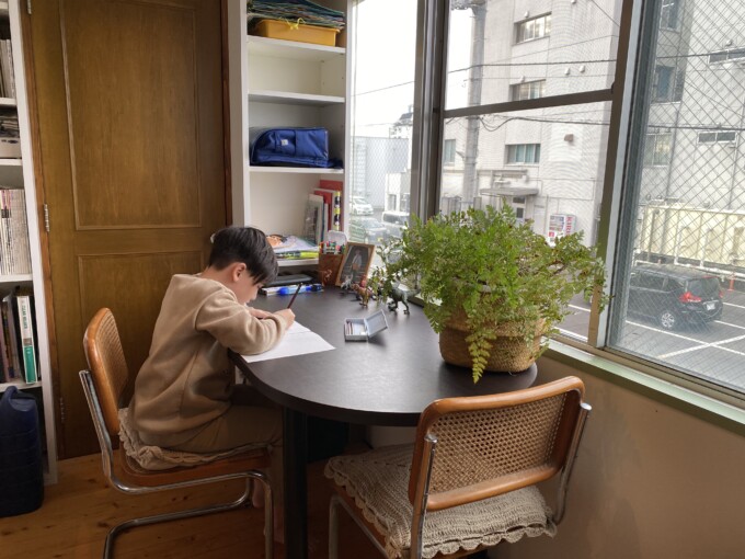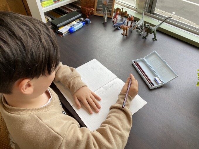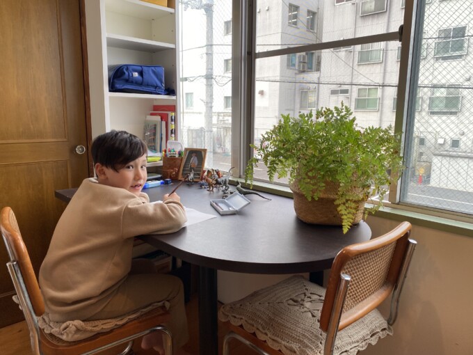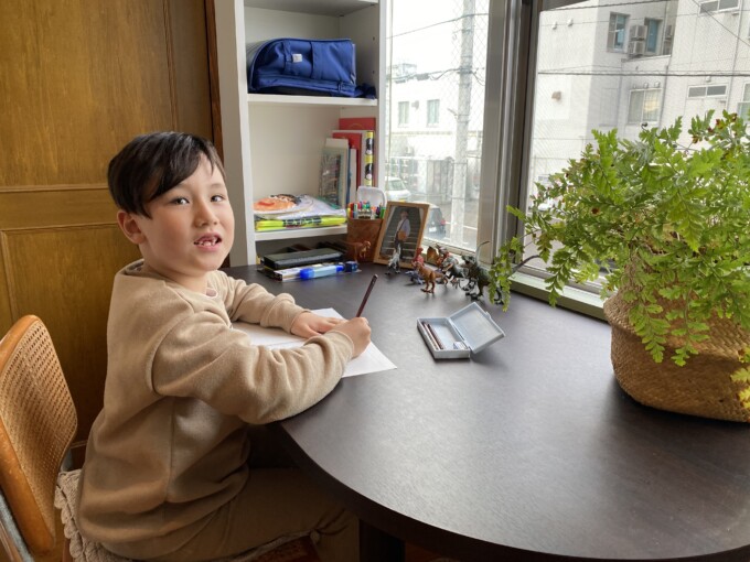 このスペースができたらいきなり、「おれ勉強したくなった!」って自分の名前の練習はじめたから!単純でかわいい。