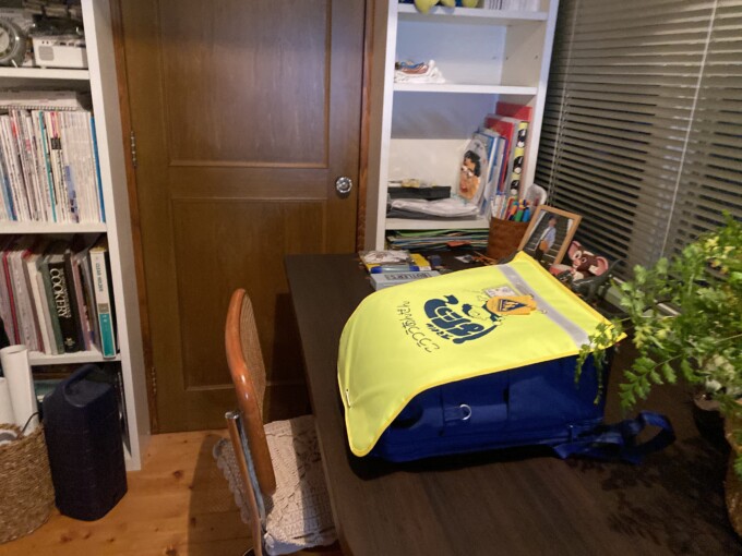あんなに春休み不規則な生活になってたけど、今日はまぁまぁセーフの時間にちゃんとベッドに行って寝ていたよ。明日からランドセルもって学校がはじまるからね!にしてもなんだか不思議だわぁ~こうやってフィオンがランドセル準備しているの。