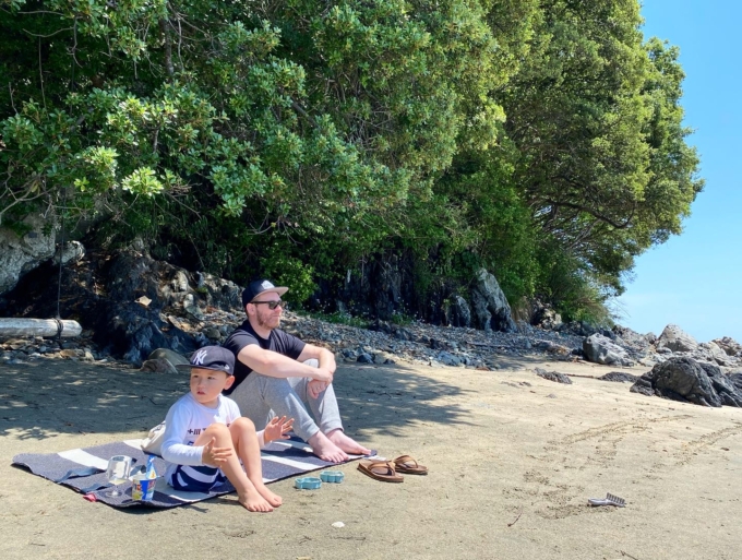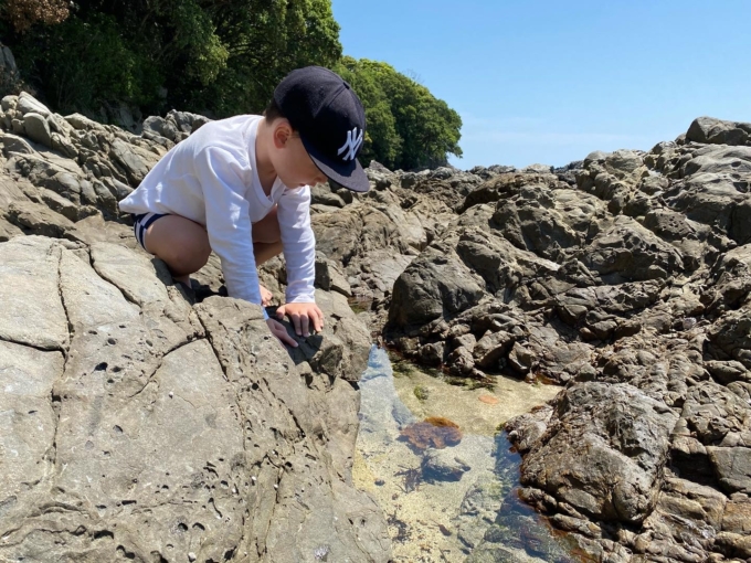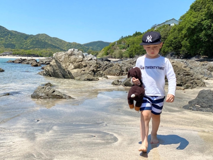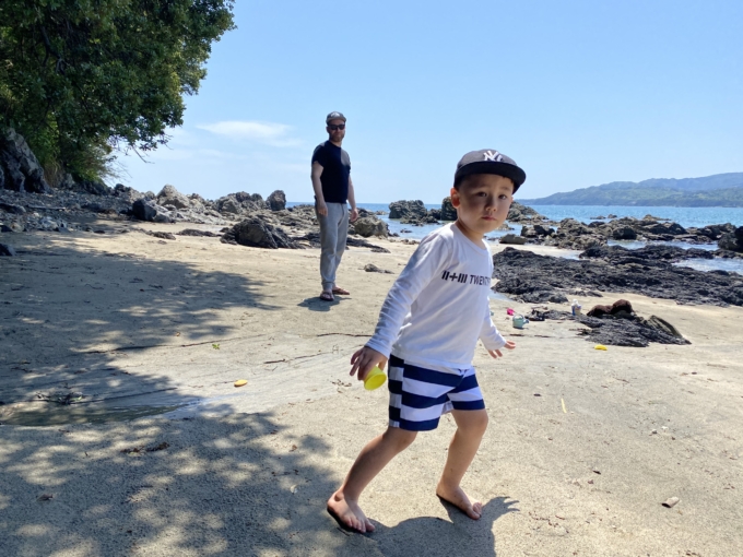 朝食後はビーチで遊んで、磯遊びもして、お砂おままごともして、やどかり捕まえて