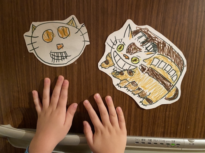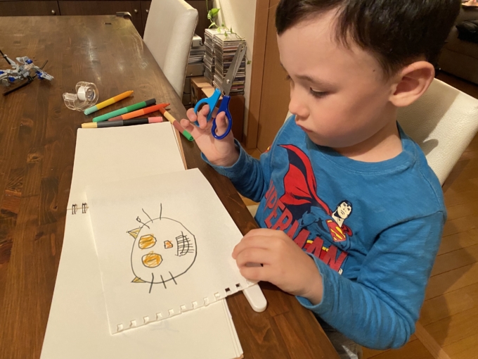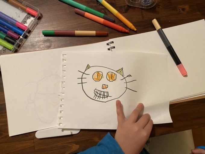 そしてその後は、恒例の「マミーも描いたらいいじゃーん!(意味は描いて!ってことね)」
