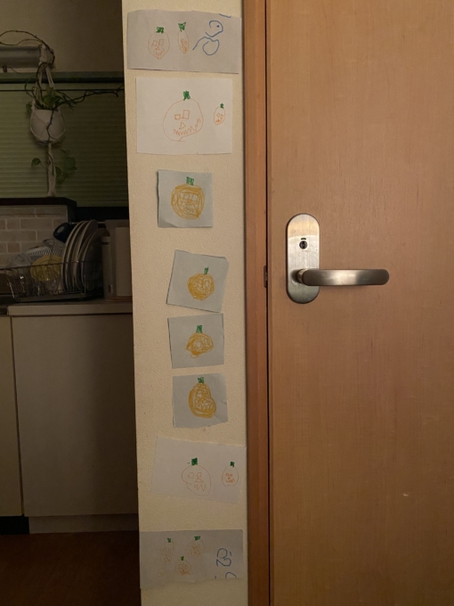 その後は、ずーーーーーーっと「I’m busy!」って言ってひたすらハロウィンのかぼちゃを描いて