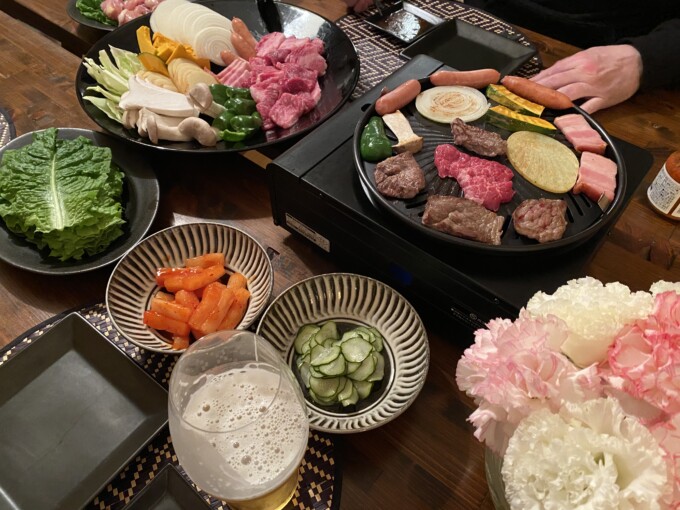 じゃーん!焼肉!!!でもエメちゃん大好きハラミがまさかの売り切れでめちゃめちゃひさしぶりにカルビになってた。でもあまり脂が多くないカルビだったからまだセーフ。日本人は脂身すきだけど(まぁおいしいやつに限るけどね)外国人は赤身好きの人が多いのよね。