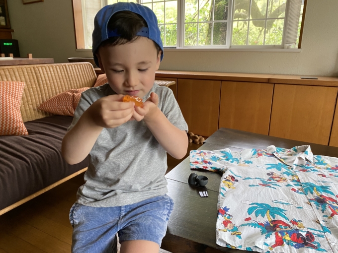 100均で買ったスライムに夢中で危うくシャツにスライムべっちょり付けるところだったよ