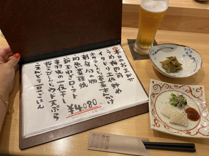 頼んだのは本日のおまかせ!これさ最近の税込み表示のルールで4080円だけど税外したら