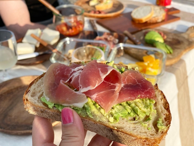 思いついていくからほぼお決まりメニュー。簡単ブルスケッタ系とかフルーツとかナッツだね。