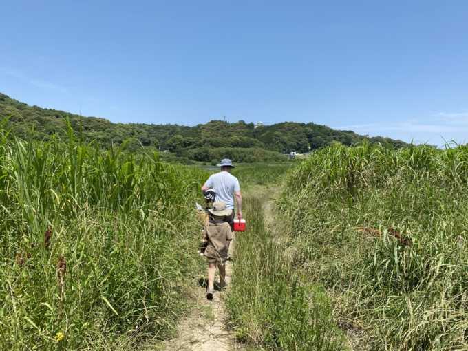 ほんとはね、右後ろの方にある溜まりのところで釣りができれば一番よかったんだけど