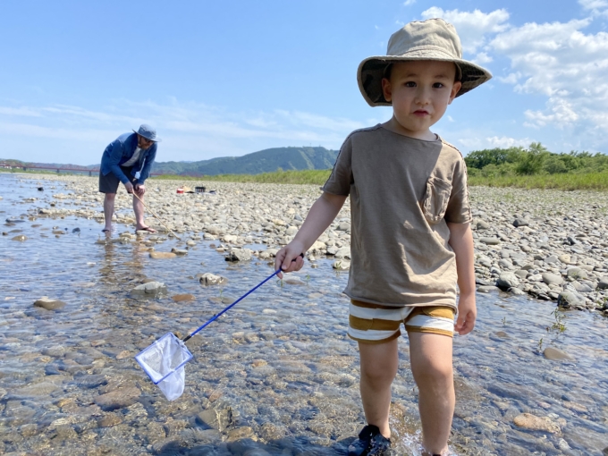 甥っ子くんは得意の素手でなかなか大きな川エビ捕ったり、カニ捕まえたり。