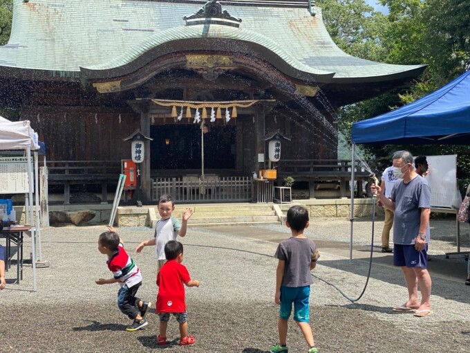 すごく暑い日だったから、お水を撒いてくれていてこどもたちがそのシャワーの中で遊んだり