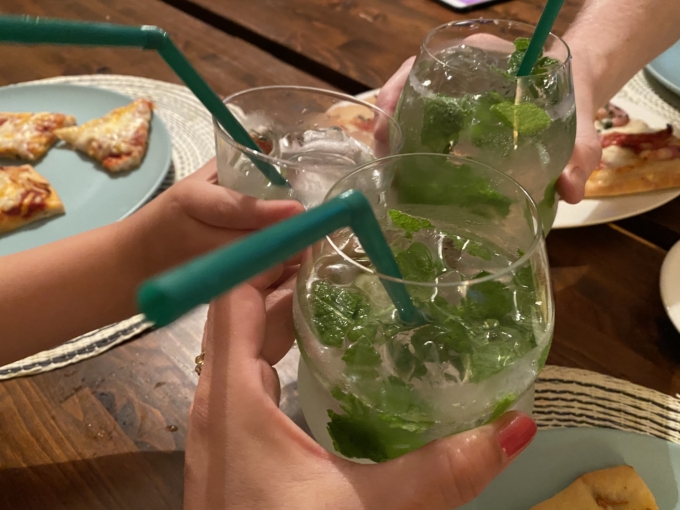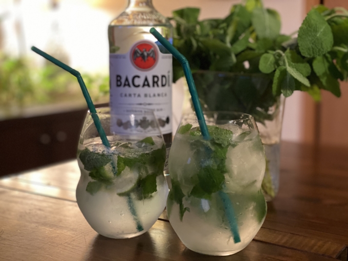 この右のわたしのモヒートは2杯目で追いミントしてるからミントもりもり。
