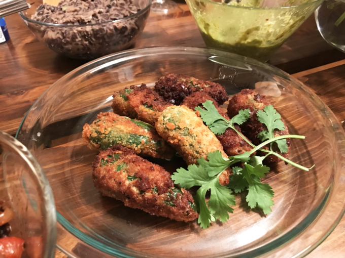 ハラペーニョの中にクリームチーズを詰めて揚げて、それにラズベリージャムを付けて食べるの!!