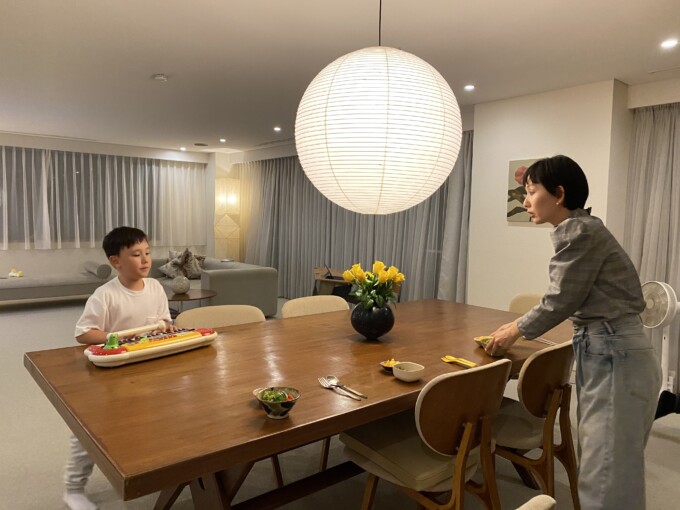 栗田さんちの朝はとっても早くて、まぁちゃんは朝5時半には毎日起きてメイクもちゃんとしてゆっくりいろいろ準備してお弁当作ってあさごはんものんびり食べる感じ。わたしはまぁちゃんが普段起きる時間の直前くらいまで仕事していて、朝は時間ギリギリで超ダッシュで朝ごはん食べさせるから見習えるものなら見習いたいとめっちゃ思った。ちなみに寝るのはこどもと一緒に9時らしい。わたしが寝る6時間以上前だわ!笑