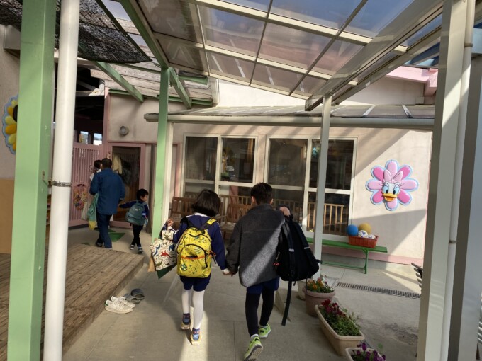 行くときはわたしが幼稚園から一緒に連れて行く係になったのでお迎えに行くと、「たのしみだね~!」って2人手をつないで行ってたよ。かわいい。