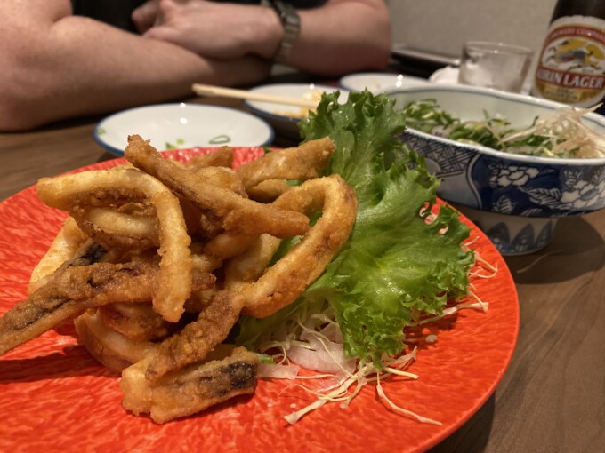 その他もエメちゃん大好きカラマリに似ているイカリングやエビチリとかサラダとか色々頼んで