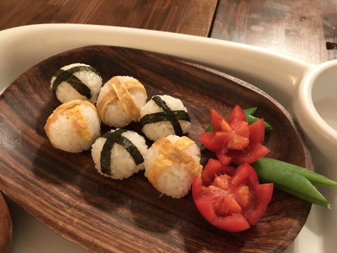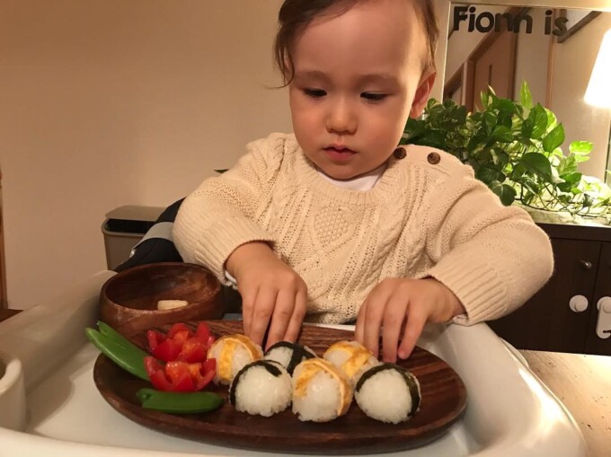 そしてフィオンくんにもそれっぽいおにぎり。酢飯は今でもあまり得意じゃないのよ、今日も幼稚園のランチはちらし寿司だったみたいで酸っぱくてお鼻がツーンとしてゲーしたよって言ってた…。