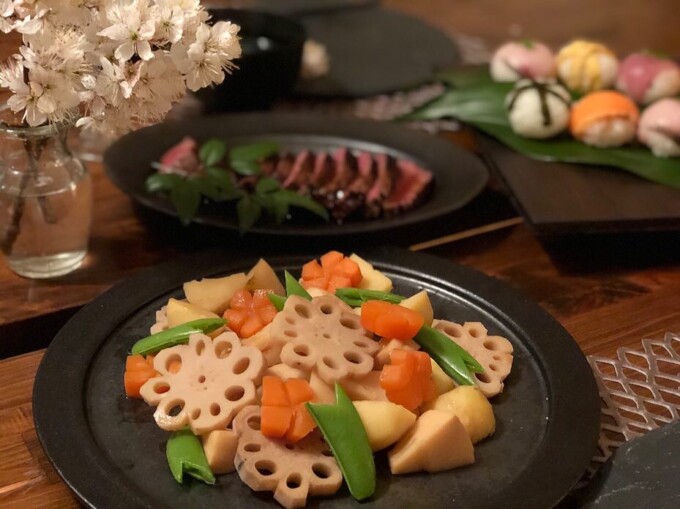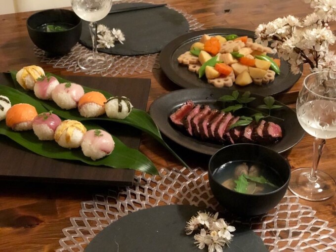 写真は4年前のおひな様ディナー。うちには娘はいないけど、なんとなーくそれっぽい食事を毎年作ってる。
