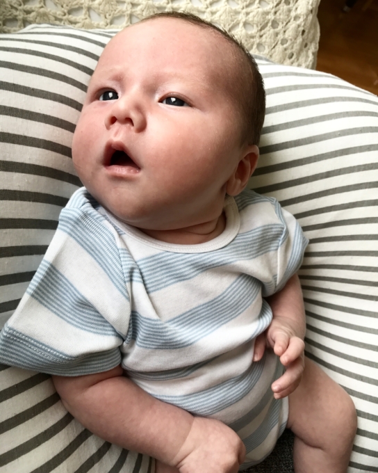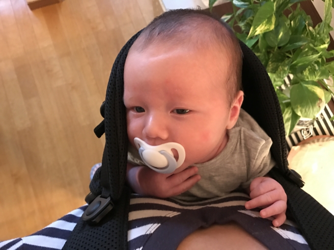 産まれてはじめてのこどもの日(言っても生後ほぼ1ヶ月よね)は抱っこ紐ビョルンが来て感動しただけみたい。