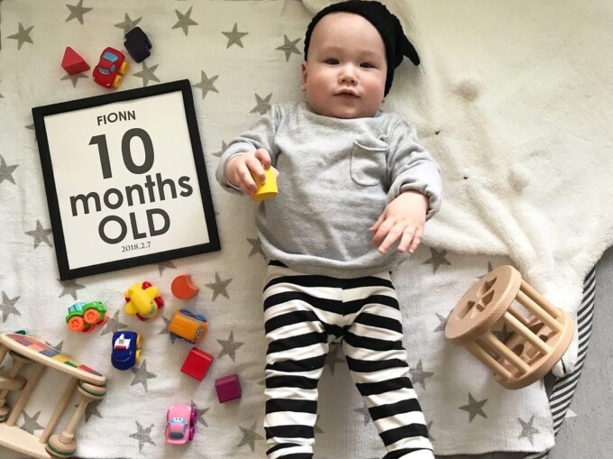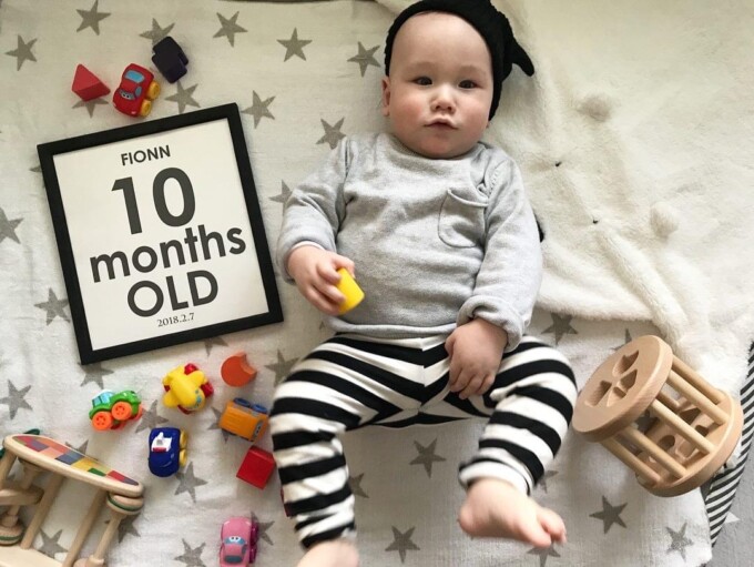 フィオンのお誕生日は4月7日なので、産まれてから1年間は毎月7日に記念のお写真を撮っていたの。