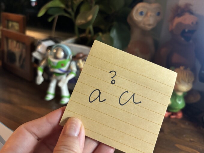 これね、もしも小学生の『ABCを書いてみよう!」っていうテストなら納得できる。だって確かにuに見えるから。でも、中3のテスト、しかも確実にこの子はすべてのaの部分をこうやって書いているのだからこの子の癖なだけってわかるじゃん!