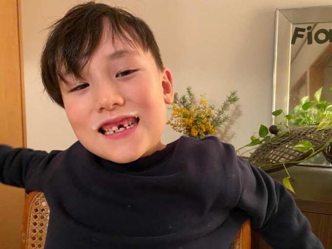 先週前歯の乳歯が抜けてめっちゃかわいいフィオン。