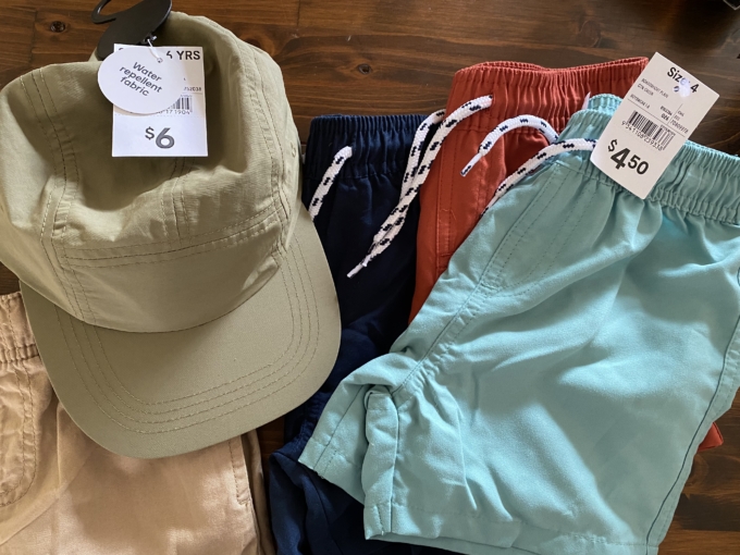 見てよこの安さ!!!今オーストラリアドル80円だからキャップ480円短パン360円也。