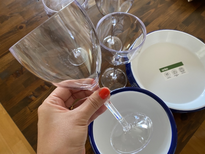 あとプラスティックのワイン用のコップ。すべてキャンプとかピクニックで使う用ね!