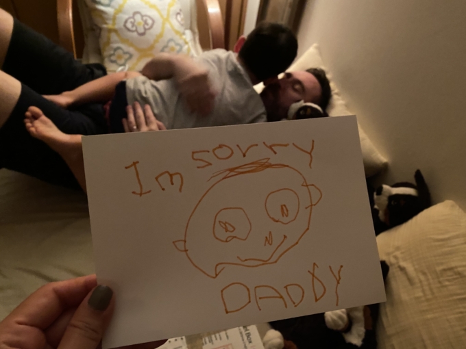 「Mummy, Tell me how to write “I’m sorry Daddy?”」って