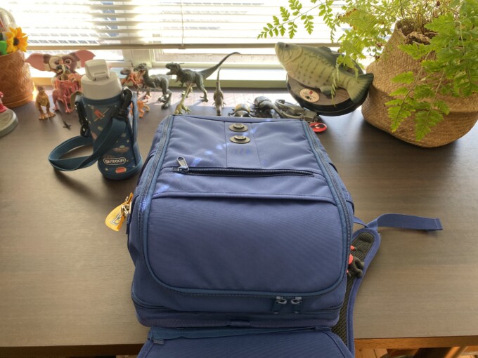 この方、身長の高くて体格もいいからまったく1年生がランドセルしてる感がないけど実際はまぁまぁサイズもあってたぶん普通のランドセルよりもずっと入ると思う!そして軽い!ポッケもネットのポッケとかもいろいろあってほんと便利。