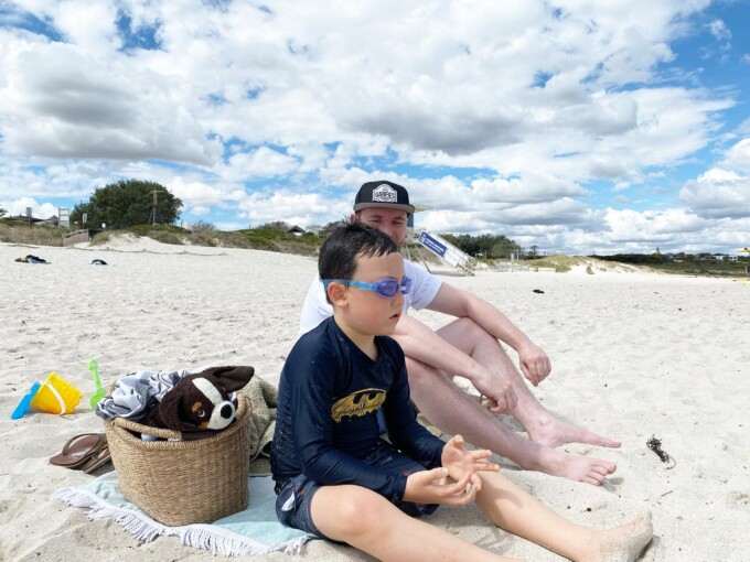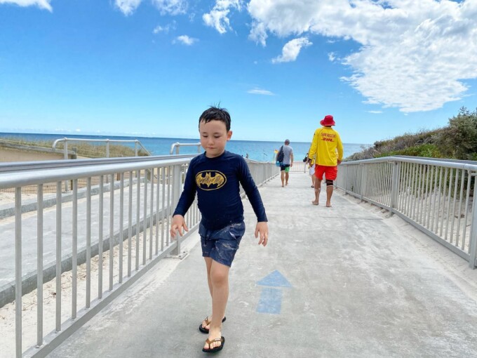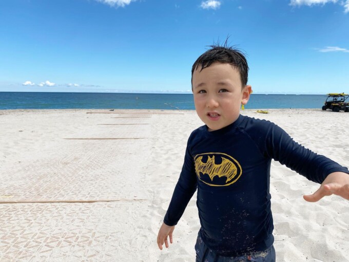 だからシャークが入ってこられないようにネットで囲まれていてライフガードもいる安全なご近所のビーチに。浅瀬でもシャークけっこう泳いでいるからこわいのよね。