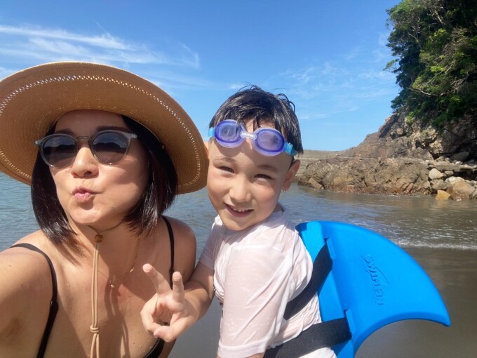 After seeing this series of photos and the story posts, Emmet, who had been staying at home, said, “I want to go with you next time!” So maybe we can go to the beach with the three of us next time. I’m happy because I’m usually in charge of going to the sea or river. The seawater is already warm, not cold at all, so my favorite season has begun!