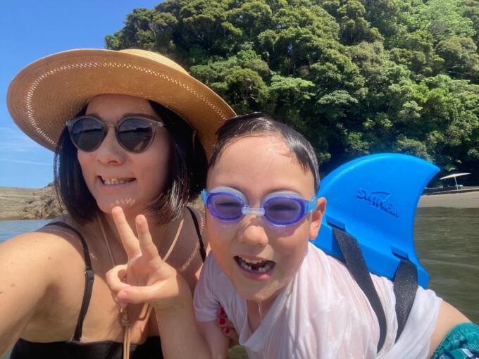 He said he wanted to surprise some elementary school kids who were playing in the sea. He told me, “Mommy, I’ll pretend to be a shark! Watch this!” and then he dove underwater and swam toward the older kids. he shouted as if he were a shark and then swam closer to the older kids. When the older boys noticed, they started acting and shouted, “It’s a shark! Run!” They were so kind.