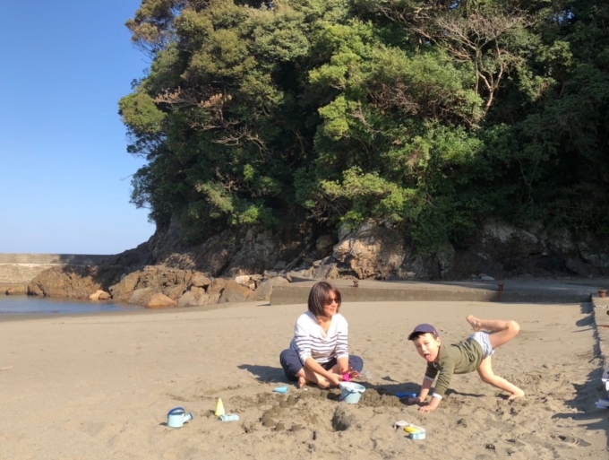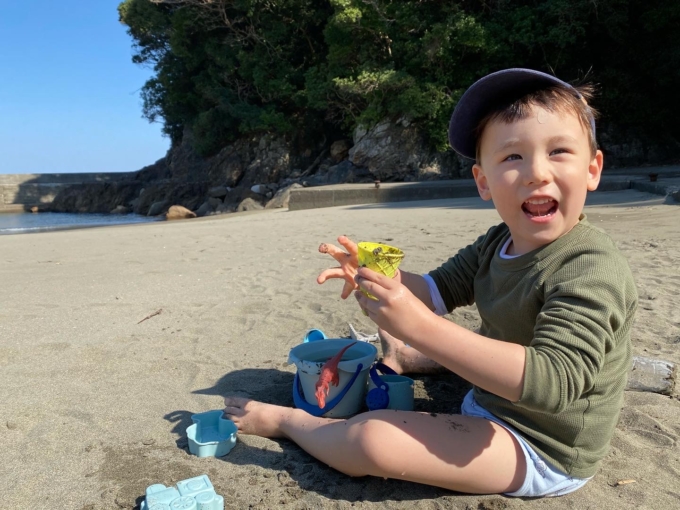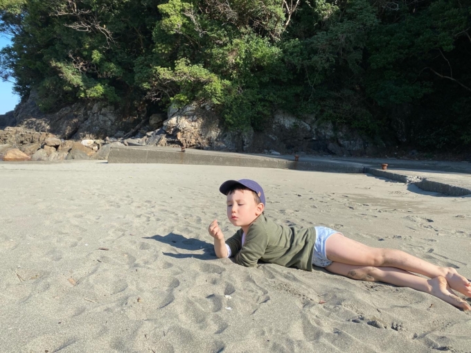 最初はおしりに砂つくのも気にしてたのに途中から水遊びに発展。
