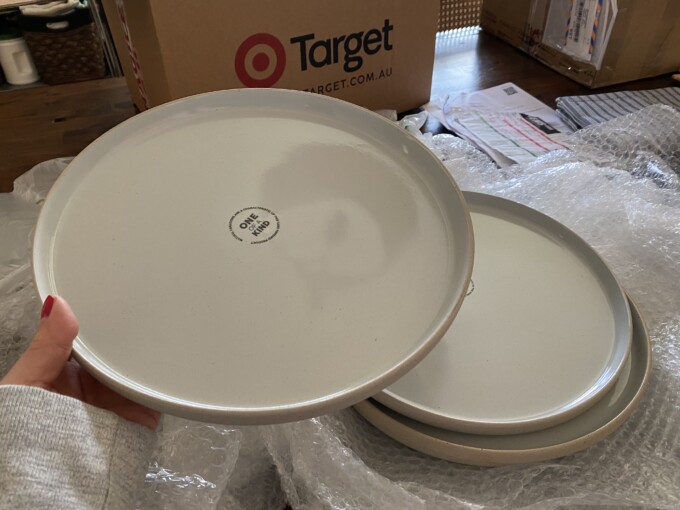 Targetからお皿のみが実家に送られてきた時のまま開封されずに箱の中に更に箱でなかなか頑丈。