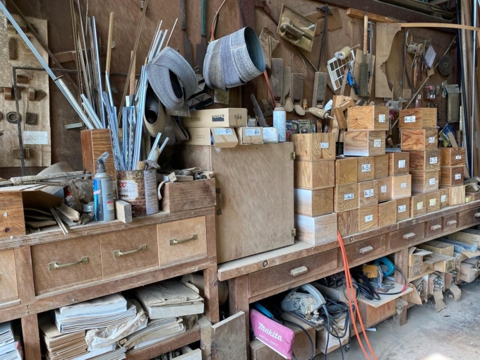 学校の体育館にあるロッカーだったりの大物も作るし、こういう小さな細かい作業も必要な家具も作るし
