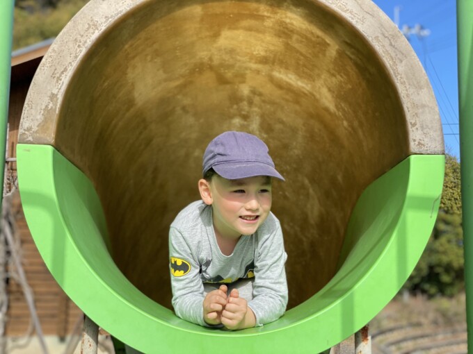 ちょっとだけ遊具があったんだけど、この滑り台だけでだいぶ遊んでたよ。