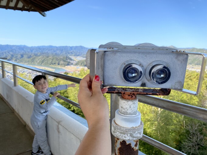 めっちゃ古い望遠鏡があったんだけど、これが意外とおもしろくて2人ではまったんだよね。