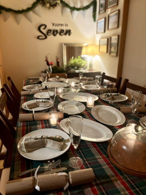 これは前日の夜。最近テーブルセッティングと前日にできる下ごしらえはやる!って決めてるからこの日も(火曜のド平日)フィオンのスイミング終わってお家帰って夕食準備してみんなで食べてその後夜の8時くらいから買い出しに行って9時くらいに帰ってきたよ。