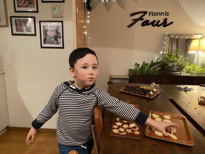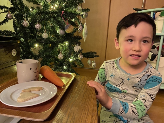 帰ってきてからずっと早くサンタにクッキー作ろう!って言ってて