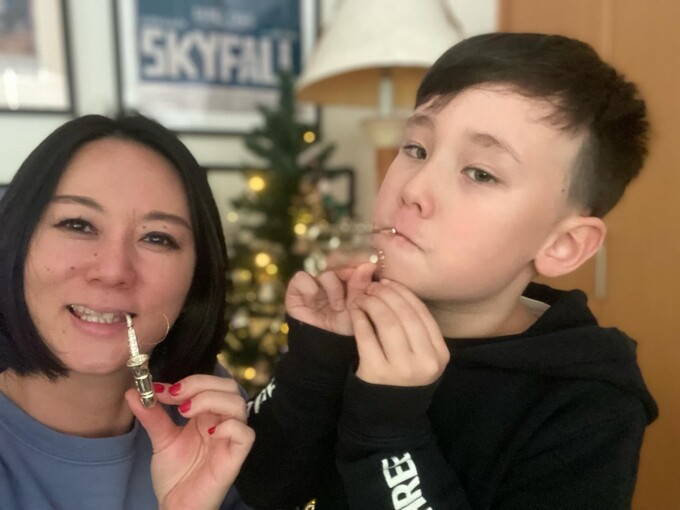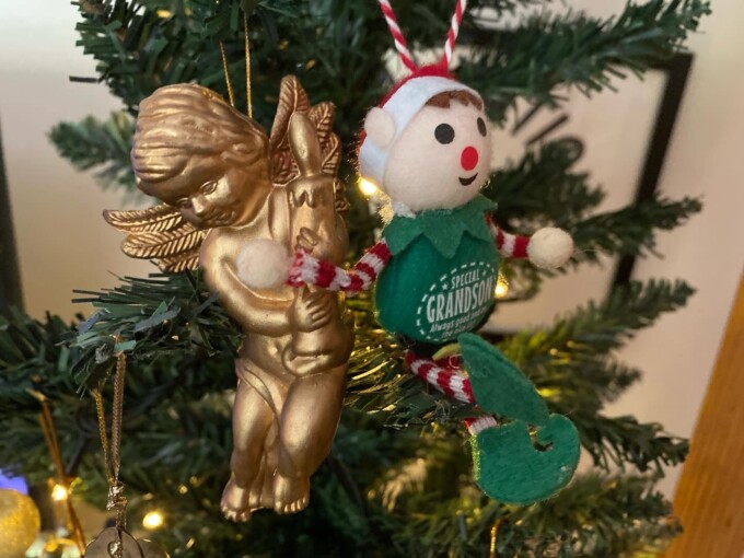 この前オーストラリアからフィオンくん用のクリスマスプレゼントが届いたんだけど(もちろん今は隠してる)その時にクリスマスのチョコレートやお菓子もたくさん届いて、その中に入ってたおもちゃのオーナメントも飾っていたよ。