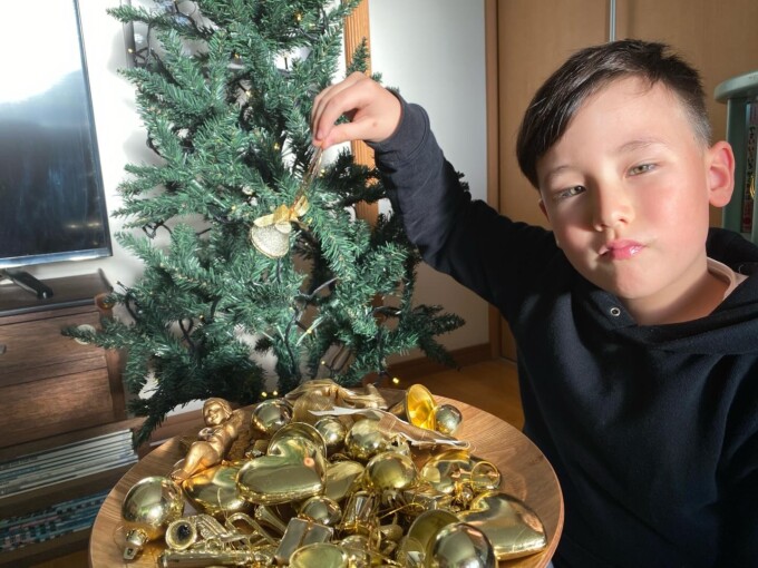 今年は昔まりちゃんが集めていたゴールドのオーナメントを飾ることにしたよ。