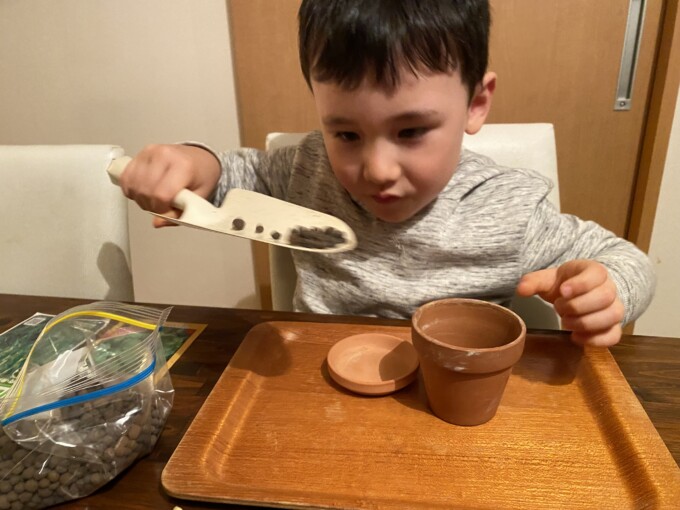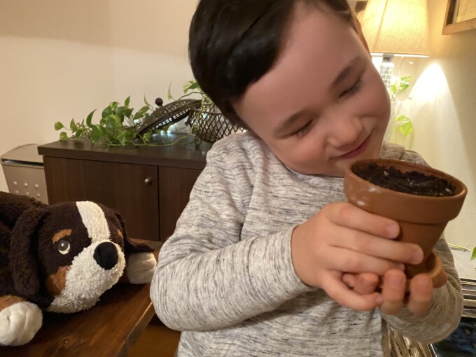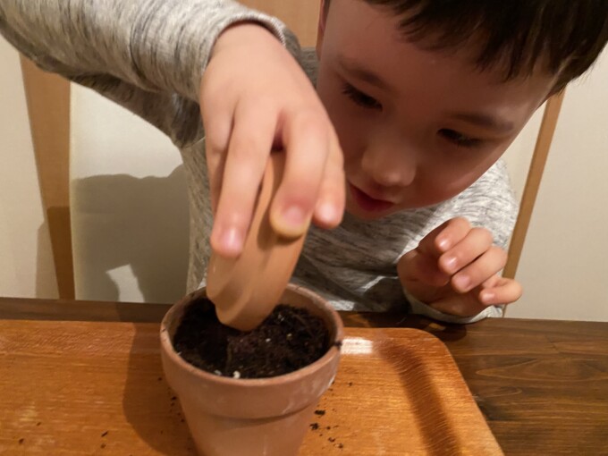 でも、もう夜だったからお家にあるものでやるしかなかったから小さな植木鉢に