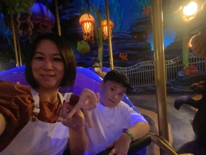 ジャンピングジェリーフィッシュとワールプールに乗ったんだけど、どちらも待ち時間15分とか20分くらいでぜーんぜん余裕。普段の込み具合がわからないけど、やっぱり平日だからそこまで混んでなかったんだと思う。子連れには待ち時間短いのはほんとありがたい。