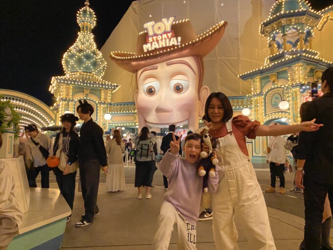 この時点でもう6時半くらいで、残りどうしても乗りたかったのがこのトイストーリーとソアリン。わたしはソアリン推しだったんだけど、この随分前から新しいシステムのファストパスみたいなのも取れない状態で(人気だからね)普通に待つと120分だったから、それなら80分待ちだったトイストーリーだね!ってこちらに。