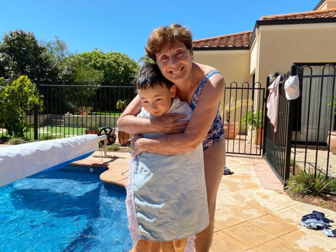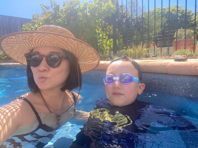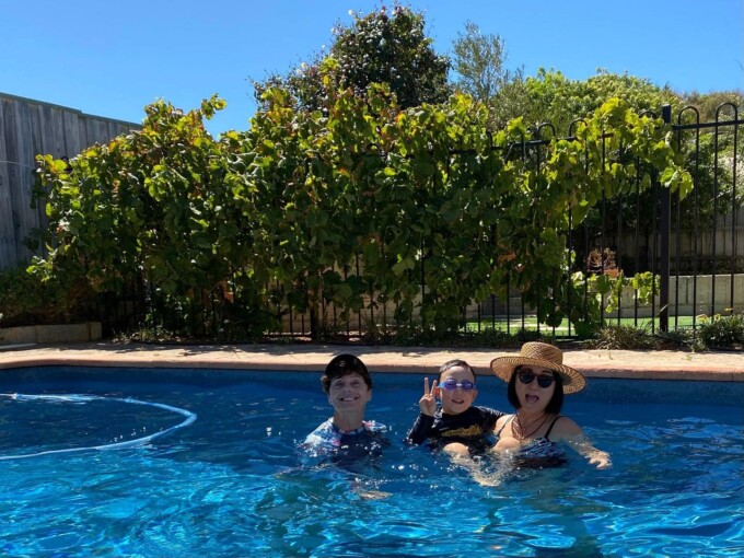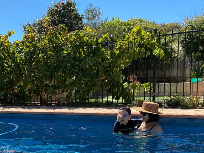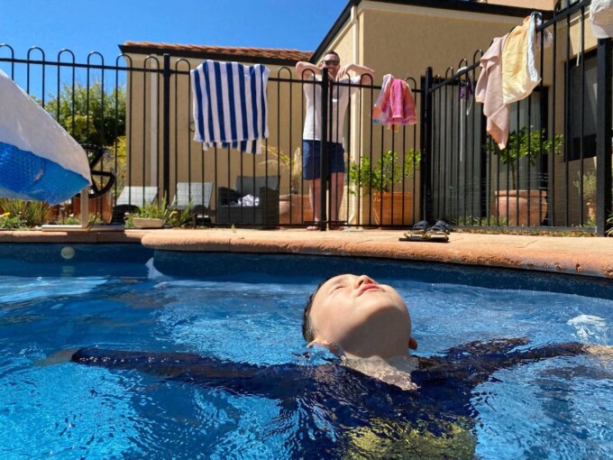 写真はその翌日、だから昨日の午後フィオン希望でお隣のシシリアのお家でプールで遊んだとってもピースフルな写真。ナナとシシリアとフィオンと4人で暑い午後を泳いで快適い過ごしたよ。
