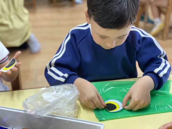 こいのぼりにお目目とウロコをつける作業だったんだけど、見てこのウロコ。