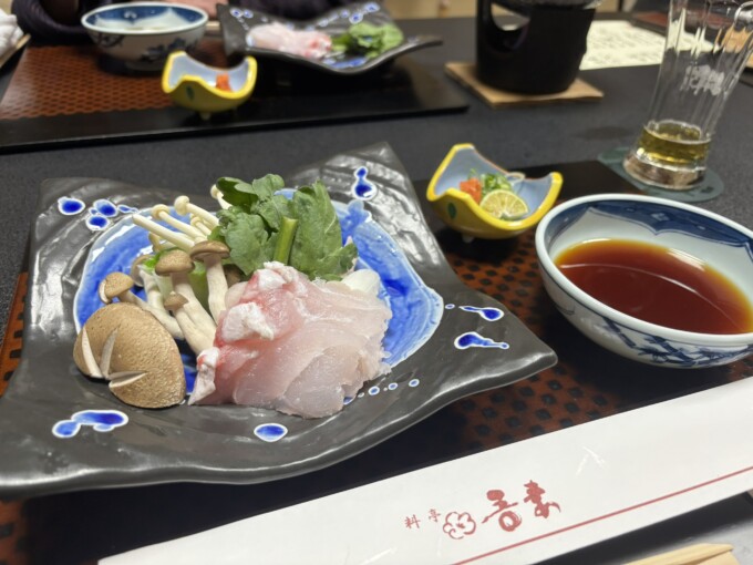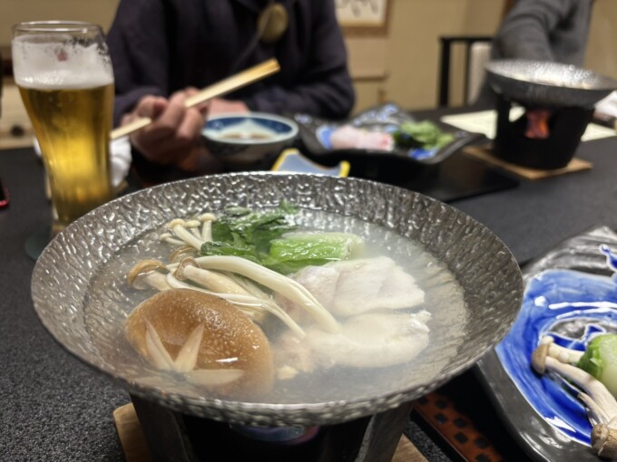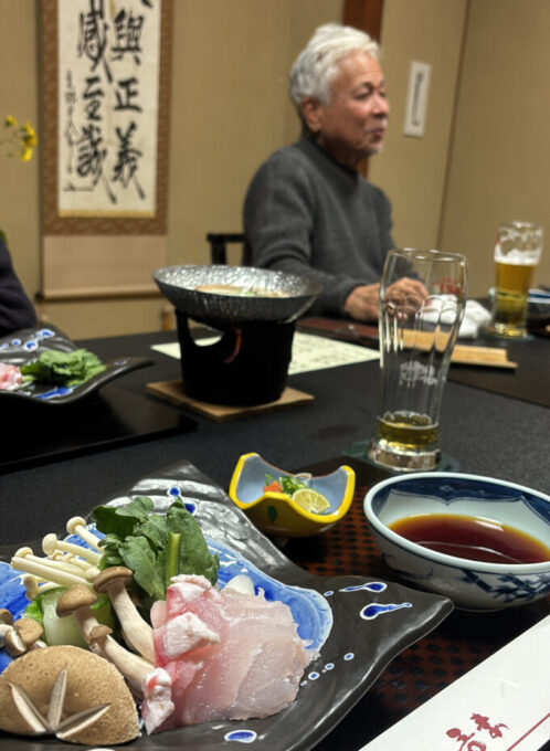 このクエ鍋に到達するまでに今までの写真にはない、土瓶蒸しやヒラメの薄造りがあったんだよ。