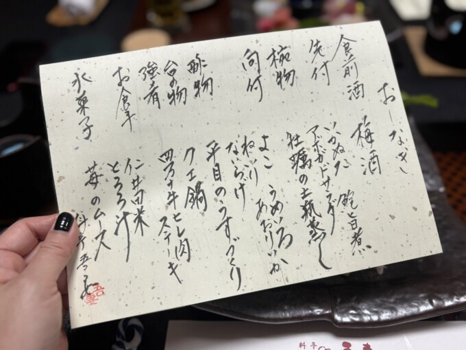 さて、こちらがこの日のお品書き。