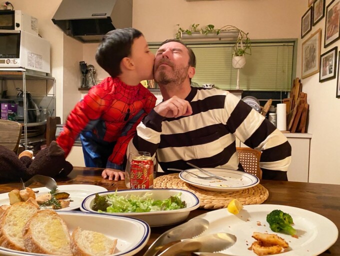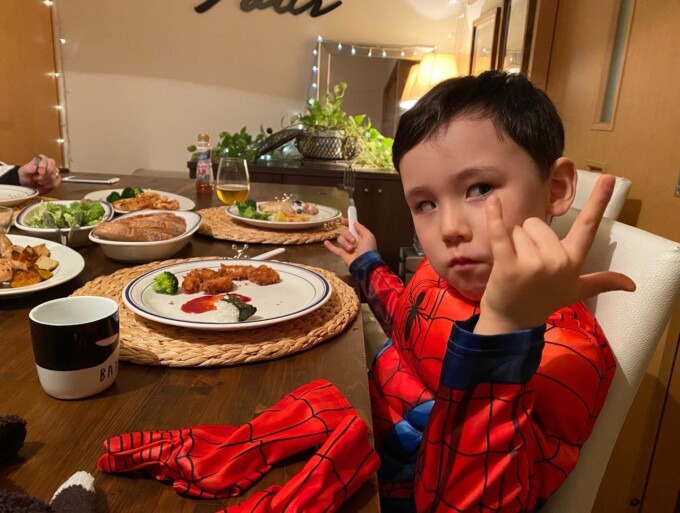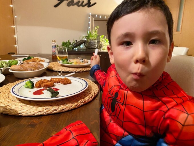 なぜだか今日は夕方からスパイダーマンになるって言ってずっとコスチュームのフィオンは