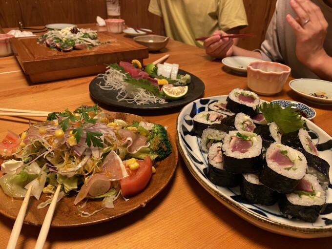 東京と高知を拠点とするご兄弟の建築家さんで、仲良しのお友達の最近できたお家も設計されたんだけどこの前見に行って感動の素晴らしさだったから自分達のお家の期待も膨らんでわくわくがやばいの!!!そのお2人が昨日今日で四万十に来てくれて、昨夜は家族で会ってわかまつで会食。