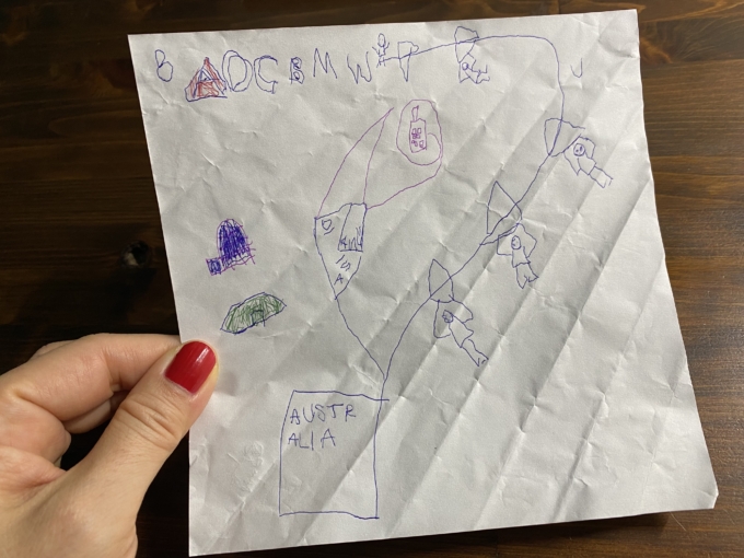 これは、忘れちゃったけどどこかからオーストラリアまでジップラインしている絵らしい。