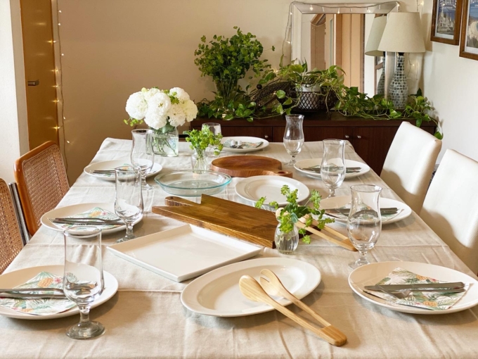 この日のテーブルコーディネートには、オーストラリアのK-martのオンラインで買ったテーブルクロス使用